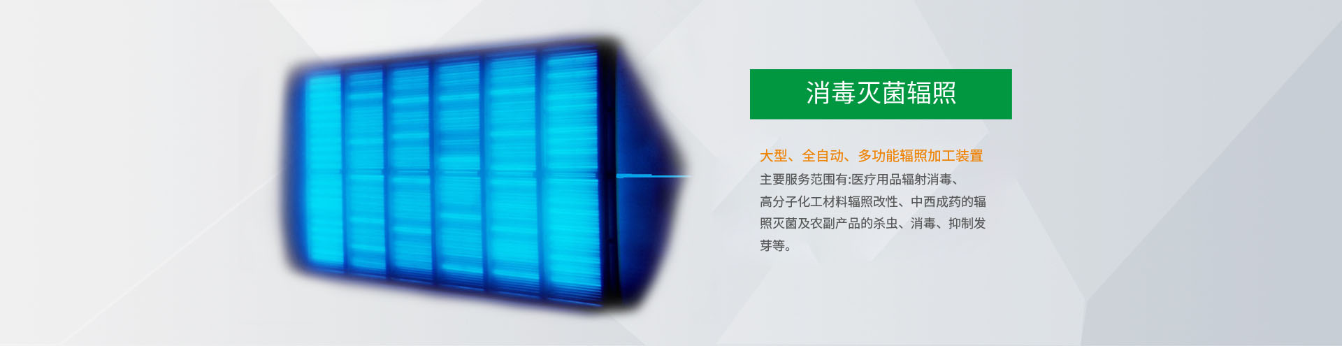 公司座落在南昌市小藍(lán)經(jīng)濟(jì)開(kāi)發(fā)區(qū),是從事輻照技術(shù)加工服務(wù)的現(xiàn)代化企業(yè).主要服務(wù)范圍有:醫(yī)療用品輻射消毒、高分子化工材料輻照改性、中西成藥的輻照滅菌及農(nóng)副產(chǎn)品的殺蟲、消毒、抑制發(fā)芽等。本公司首期投資3000萬(wàn)元建設(shè)了一座具有國(guó)內(nèi)領(lǐng)先水平的大型、全自動(dòng)、多功能輻照加工裝置,此裝置是以鈷-60為能源,設(shè)計(jì)裝源200萬(wàn)居里,具有自動(dòng)化程度高、通用性強(qiáng)...